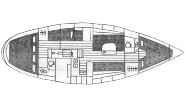 These are accompanied by diesel heating, furling genoa (new 2002), stacpac mainsail with all lines led to cockpit (new 2003) and oversized winches, electric anchor windlass, teak decks, shorepower, tender and 4hp outboard, and a 29hp Volvo engine. Click on the plan to explore Findeln's layout